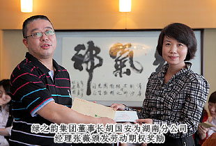 引入“員工勞動期權(quán)”這一概念,并付諸于千金一諾的主動性企業(yè)行為,是綠之韻集團在其發(fā)展過程中區(qū)別于其他企業(yè)的顯著標(biāo)志,全面推動著“綠之韻夢”從夢想照進現(xiàn)實的歷史進程。2013年5月6日下午,綠之韻集團綠之韻2013年第一季度市場工作匯報暨2012年度勞動期權(quán)獎金頒發(fā)儀式成功舉行。綠之韻集團董事長胡國安、董事常務(wù)副總裁勞嘉、執(zhí)行總經(jīng)理龔振、財務(wù)總監(jiān)劉淑娟、市場營銷中心(中國區(qū))業(yè)務(wù)總經(jīng)理何健、市場營銷中心(中國區(qū))副總經(jīng)理諶獻軍、市場營銷中心(中國區(qū))市場運營總監(jiān)陳晨、綠之韻國際商學(xué)院院長蔣林翰、市場營銷中心營銷副總裁李繼前及2012年度勞動股份期權(quán)獲獎員工共計35人出席本次會議。會議由綠之韻集團董事、常務(wù)副總裁勞嘉主持。