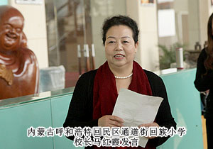 馬紅霞校長在發(fā)言中表示:首先代表全校師生熱烈祝賀綠之韻2013年高峰論壇取得圓滿成功,祝愿民族企業(yè)綠之韻未來業(yè)績蒸蒸日上。她說,幾年來我校和綠之韻集團(tuán)建立起了深厚的友誼,堪稱民族企業(yè)與民族教育和諧共建的典范。在綠之韻的幫助和影響下,我們將綠之韻“水的精神”引入到校本課程,編撰系列校本教材,成為學(xué)校思想品德教育的一大亮點(diǎn),引起了內(nèi)蒙古電視臺(tái)的關(guān)注,并予以報(bào)道。