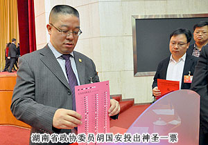 胡國(guó)安委員表示:“湖南‘兩會(huì)’是在全省深入學(xué)習(xí)貫徹中共“十八大”精神、加快全面建成小康社會(huì)的新形勢(shì)下召開(kāi)的重要會(huì)議,是湖南省承前啟后、繼往開(kāi)來(lái)的一次盛會(huì)。我們將深入學(xué)習(xí)貫徹中共十八精神,圍繞中心,服務(wù)大局,求真務(wù)實(shí),開(kāi)拓進(jìn)取,充分發(fā)揮委員的主體作用,認(rèn)真履行政治協(xié)商、民主監(jiān)督、參政議政職能,建言獻(xiàn)策助推科學(xué)發(fā)展,凝心聚力促進(jìn)社會(huì)和諧,為推動(dòng)湖南“四化兩型”戰(zhàn)略做出積極的貢獻(xiàn)!”