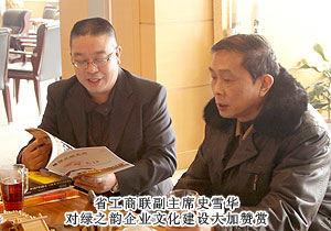 聽完胡國安董事長的匯報,省工商聯(lián)副主席史雪華對綠之韻集團的跨越式發(fā)展給予了充分肯定和高度贊揚。他指出,作為從湖南本土成長起來的品牌,綠之韻集團的發(fā)展在樹立了行業(yè)標桿的同時,也為全國同行提供了發(fā)展模式的借鑒。十年來,綠之韻集團在生產經營、黨支部建設、企業(yè)文化、社會責任和公益慈善等方面都做了大量的卓有成效的工作,取得了驕人的成績。希望綠之韻集團進一步充分發(fā)揮自身優(yōu)勢,緊緊圍繞湖南省“十二五”目標任務和“四化兩型”建設,多建發(fā)展之言,多獻務實之策,多立企業(yè)之功。