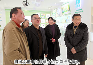 2013年1月18日下午,湖南省工商聯(lián)副主席史雪華、省工商聯(lián)扶貧處處長甘露一行蒞臨綠之韻集團考察指導工作。在視察過程中,綠之韻集團董事長胡國安、董事常務副總裁勞嘉陪同領導參觀了綠之韻集團總部,從綠之韻多功能產品形象展示廳、到黨建工作宣傳欄、再到企業(yè)榮譽墻,胡國安董事長仔細介紹,省工商聯(lián)副主席史雪華一行時而駐足,時而詢問,頻頻點頭以示肯定和贊許。