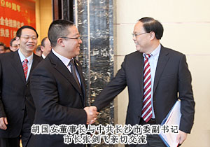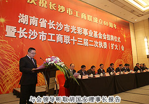 謀民生之利,解民生之憂。2012年12月21日,正值全國上下深入學(xué)習(xí)、貫徹黨的十八大精神的重要時刻,湖南省長沙市光彩事業(yè)基金會掛牌儀式暨慶祝市工商聯(lián)成立60周年大會在長沙隆重召開。中共長沙市委副書記、市長張劍飛,中共湖南省委統(tǒng)戰(zhàn)部副部長、省工商聯(lián)黨組書記湯新華,市領(lǐng)導(dǎo)文樹勛、黎石秋、謝明德、彭繼球等參加會議。會上,張劍飛市長為長沙市光彩事業(yè)基金會授牌,長沙市工商聯(lián)副主席、綠之韻集團(tuán)董事長胡國安代表基金會接受牌匾,并憑借“義利兼顧,德行并重”的光彩精神擔(dān)任第一屆理事會理事長。