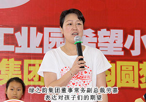 綠之韻集團(tuán)董事常務(wù)副總裁勞嘉表示:綠之韻始終關(guān)注著社會(huì)公益事業(yè),關(guān)注孩子們的成長(zhǎng),幫助孩子實(shí)現(xiàn)自己的學(xué)習(xí)夢(mèng)想。從捐獻(xiàn)希望小學(xué),給孩子們一個(gè)寬敞明亮的學(xué)習(xí)環(huán)境,到今天綠韻圓夢(mèng)?書香助學(xué)活動(dòng),我們捐獻(xiàn)書籍,滿足孩子們的學(xué)習(xí)熱情。綠之韻將始終以一個(gè)民族企業(yè)的責(zé)任要求自己,造福社會(huì),為社會(huì)發(fā)展貢獻(xiàn)自己的力量。