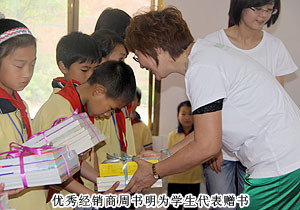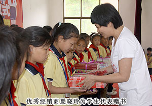 綠之韻集團(tuán)董事常務(wù)副總裁勞嘉、黨支部書記許達(dá)仲、慈善基金負(fù)責(zé)人蔣文,湖南地區(qū)優(yōu)秀經(jīng)銷商代表周書明、羅新春、夏曉玲等出席捐贈(zèng)儀式,用精美的圖書為孩子們打開(kāi)知識(shí)世界的一扇窗。