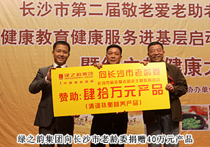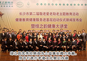 2012年4月17日,由綠之韻集團與長沙市老齡委共同舉辦的長沙市第二屆敬老愛老助老活動啟動儀式在長沙市人民政府隆重舉行。原中共長沙市委副書記張慧明,原長沙市人大主任、市老齡委顧問楊宏,原長沙市人大副主任、市老齡委顧問劉湘皋,湖南省老齡委辦公室副主任李永勝、劉憲銘,長沙市老齡委常務副主任、市民政局局長曹再興,長沙市老齡委副主任、市民政局黨委委員楊為錦,長沙市老齡委副主任、辦公室主任廖肇聯(lián)等蒞臨指導,長沙市工商行政管理局、財政局、科學技術局等50家合作政府機關、企業(yè)代表與綠之韻優(yōu)秀經(jīng)銷商張建軍、黃翔、李正元等共計1300余人參加了啟動儀式。