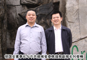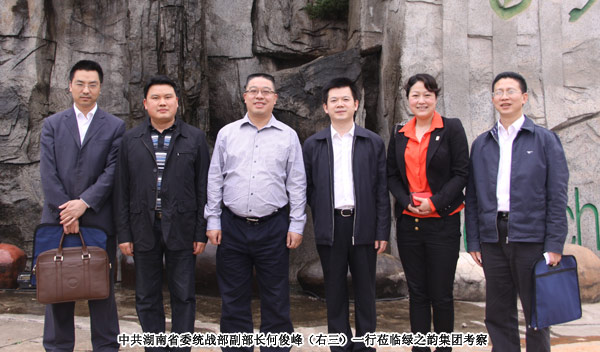 2012年4月13日,中共湖南省委統(tǒng)戰(zhàn)部副部長何俊峰一行蒞臨綠之韻集團(tuán),就湖南省“萬企聯(lián)村,共同發(fā)展” 30個省級優(yōu)秀市場項目之一的——綠之韻益陽安化萬畝中藥材種植基地建設(shè)情況進(jìn)行深入調(diào)研。湖南省優(yōu)秀政協(xié)委員、綠之韻集團(tuán)董事長胡國安、董事常務(wù)副總裁勞嘉全程陪同調(diào)研。