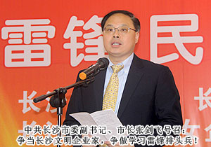 中共長沙市委副書記、市長張劍飛在會上表示,希望廣大工商界人士、女企業(yè)家要切實(shí)增強(qiáng)歷史使命感和發(fā)展緊迫感,爭當(dāng)長沙文明企業(yè)家,爭做學(xué)習(xí)雷鋒排頭兵,以雷鋒為榜樣,自覺地把個(gè)人發(fā)展與全市經(jīng)濟(jì)社會發(fā)展結(jié)合起來,把個(gè)人富裕與全市人民共同富裕結(jié)合起來,堅(jiān)定信心,搶抓機(jī)遇,乘勢而上,以實(shí)際行動促進(jìn)我市非公有制經(jīng)濟(jì)蓬勃發(fā)展,開創(chuàng)我市工商界人士學(xué)習(xí)雷鋒精神的嶄新篇章。同時(shí),張劍飛要求全市工商界人士要學(xué)習(xí)雷鋒同志的實(shí)干精神,搶抓機(jī)遇,加快企業(yè)轉(zhuǎn)型升級;要學(xué)習(xí)雷鋒同志的“釘子”精神,刻苦學(xué)習(xí),不斷提升自身素質(zhì);要學(xué)習(xí)雷鋒同志的“傻子”精神,努力奉獻(xiàn),積極承擔(dān)社會責(zé)任。