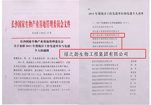 2012年2月28日,長(zhǎng)沙國(guó)家生物產(chǎn)業(yè)基地經(jīng)濟(jì)工作會(huì)議在瀏陽(yáng)市人民政府行政中心隆重召開(kāi)。湖南省經(jīng)信委黨組成員、副主任殷林波,湖南省發(fā)改委黨組成員、總經(jīng)濟(jì)師楊世芳等各級(jí)領(lǐng)導(dǎo)出席會(huì)議并發(fā)表重要講話。會(huì)上,綠之韻集團(tuán)榮獲“2011年度稅收貢獻(xiàn)獎(jiǎng)”“名牌產(chǎn)品獎(jiǎng)”“統(tǒng)計(jì)工作先進(jìn)單位”多項(xiàng)殊榮;綠之韻集團(tuán)員工陳英榮獲“統(tǒng)計(jì)工作先進(jìn)個(gè)人”及“財(cái)務(wù)管理先進(jìn)工作者”稱(chēng)號(hào);易利群榮獲“統(tǒng)計(jì)工作先進(jìn)個(gè)人”稱(chēng)號(hào)。綠之韻集團(tuán)董事長(zhǎng)胡國(guó)安出席領(lǐng)獎(jiǎng)并接受產(chǎn)業(yè)基地下達(dá)的2012年目標(biāo)管理任務(wù)書(shū)。