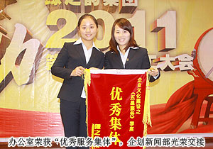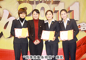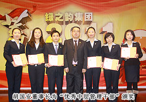 會(huì)議最激動(dòng)人心的時(shí)刻屬頒獎(jiǎng)環(huán)節(jié),為表彰過去一年里兢兢業(yè)業(yè)、踏實(shí)肯干、辛勤付出的優(yōu)秀員工,“四季度服務(wù)明星”“優(yōu)秀服務(wù)集體”“年度優(yōu)秀職員”“年度優(yōu)秀基層管理干部”“年度優(yōu)秀中層管理干部”等獎(jiǎng)項(xiàng)相繼頒發(fā)。同時(shí),通過全體同事的投票選舉,“陽(yáng)光天使”獎(jiǎng)項(xiàng)首次頒發(fā),樂于助人、團(tuán)結(jié)同事的辦公室李倩婷榮獲該稱號(hào)。透過每一位獲獎(jiǎng)代表的分享,他們的工作態(tài)度:忠誠(chéng)、敬業(yè)和專業(yè),無不讓人心生敬意。胡國(guó)安董事長(zhǎng)在總結(jié)發(fā)言中表示:感謝每一位員工不離不棄的追隨,在綠之韻邁入第九個(gè)發(fā)展年頭之際,要向每一位同仁道一聲誠(chéng)摯的感謝。綠之韻在2011年從各方面夯實(shí)著基礎(chǔ),為2012年的突破做好了充足的準(zhǔn)備,“蓄”為積淀,“力”為爆發(fā),只要全體綠之韻人上下一心,同心同步,我們定能龍騰海天,再創(chuàng)新高!