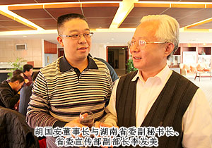 2011年12月16日上午,“央媒?湘企”深化“走轉(zhuǎn)改”座談會(huì)暨“御品德山懷”央媒好新聞?lì)C獎(jiǎng)儀式在長(zhǎng)沙普瑞溫泉大酒店舉行,來自中央70多家新聞單位駐湘記者站的100余名媒體負(fù)責(zé)人、記者、近20名湘企代表匯聚一堂,共同為深化新聞單位“走基層、轉(zhuǎn)作風(fēng)、改文風(fēng)”活動(dòng)進(jìn)行探討。原湖南省政協(xié)主席、中央新聞單位駐湘記者分會(huì)榮譽(yù)會(huì)長(zhǎng)王克英,湖南省委副秘書長(zhǎng)、省委宣傳部副部長(zhǎng)李發(fā)美,省委副秘書長(zhǎng)、省政府新聞辦主任孔和平等領(lǐng)導(dǎo)出席儀式并為獲獎(jiǎng)?wù)哳C獎(jiǎng)。綠之韻集團(tuán)胡國(guó)安董事長(zhǎng)應(yīng)邀出席會(huì)議并與在座媒體代表及各企業(yè)家展開座談?dòng)懻摗?/span>