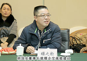 為積極響應(yīng)由中宣部、中央外宣辦、國(guó)家廣電總局、新聞出版總署、中國(guó)記協(xié)五部門對(duì)新聞戰(zhàn)線開展的“走基層、轉(zhuǎn)作風(fēng)、改文風(fēng)”活動(dòng)部署,綠之韻集團(tuán)與三一、中聯(lián)、德山酒業(yè)等企業(yè)代表對(duì)央媒走基層提出了許多建設(shè)性意見,熱切期盼央媒把深化“走轉(zhuǎn)改”活動(dòng)與主題宣傳、熱點(diǎn)引導(dǎo)和輿論監(jiān)督結(jié)合起來。與會(huì)央媒代表也紛紛表示,在今后的“走轉(zhuǎn)改”活動(dòng)中,將在“深、廣、實(shí)”上下功夫,“深”入企業(yè)研究問題,用“走轉(zhuǎn)改”方式增強(qiáng)企業(yè)新聞吸引力,“廣”就是接觸企業(yè)的方方面面,采訪企業(yè)的一線工人,多聽取一線工人的呼聲,“實(shí)”就是要重建設(shè)性報(bào)道,幫助企業(yè)解決實(shí)際問題。胡國(guó)安董事長(zhǎng)在座談會(huì)上對(duì)多年來各媒體單位對(duì)企業(yè)的支持表示衷心感謝,并就企業(yè)與媒體關(guān)系的建立及交流提了許多建議,希望媒企合作更加緊密,媒體單位深入開展“走轉(zhuǎn)改”,多為湖南實(shí)現(xiàn)“兩個(gè)加快”鼓與呼。