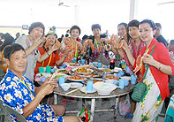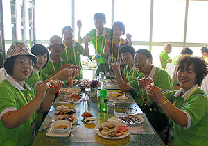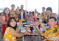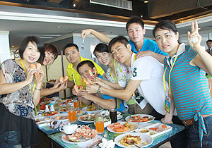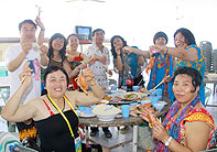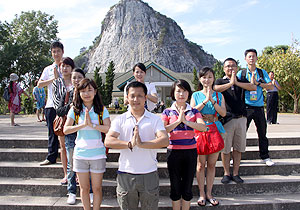 泰國(guó)是“千佛之國(guó)”,全國(guó)大大小小的廟宇有30000多座,95%的人都是非常虔誠(chéng)的佛教徒,在這個(gè)文明古國(guó),泰國(guó)人民的真誠(chéng)、樸實(shí)、憨厚,給世界游客留下了深刻的印象?;锇閭円踩豚l(xiāng)隨俗,向?qū)в螌W(xué)起了泰國(guó)話,“薩瓦迪卡”成為了伙伴們彼此問候的口頭禪。