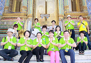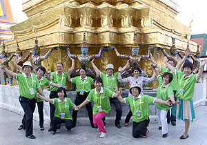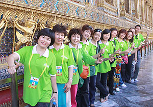 優(yōu)美迷人的亞熱帶風(fēng)光、廣博的佛教文化、獨(dú)有的民間風(fēng)俗,使泰國(guó)蜚聲海外,吸引著世界各地的游客觀光旅游,這里古老的寺廟香火旺盛,獨(dú)特的民族文化妖嬈萬分。每一年,都會(huì)有綠之韻精英踏上這片熱土,接過夢(mèng)想的接力棒,向世界展示綠之韻的風(fēng)采……2011年11月19日—24日,在綠之韻集團(tuán)總裁助理兼企劃教育總監(jiān)何健的帶領(lǐng)下,近100名綠之韻精英與員工跨上了浪漫的泰國(guó)之旅。