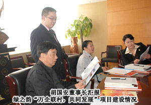 2011年11月23日,長(zhǎng)沙市委統(tǒng)戰(zhàn)部常務(wù)副部長(zhǎng)劉映群,市委督辦專員、市委統(tǒng)戰(zhàn)部調(diào)研員吳忠祥一行蒞臨綠之韻集團(tuán)考察調(diào)研,就綠之韻“萬(wàn)企聯(lián)村,共同發(fā)展”省級(jí)優(yōu)秀示范項(xiàng)目建設(shè)進(jìn)行工作指導(dǎo),綠之韻集團(tuán)董事長(zhǎng)胡國(guó)安、董事常務(wù)副總裁勞嘉陪同考察。