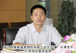 2011年8月15日,就綠之韻集團(tuán)申報“綠之韻湖南益陽萬畝中藥材種植加工市場營銷項(xiàng)目”為“萬企聯(lián)村,共同發(fā)展”活動省級示范項(xiàng)目事宜,在中共湖南省委統(tǒng)戰(zhàn)部經(jīng)濟(jì)處處長肖玲玲、湖南省工商聯(lián)扶貧處處長甘露的帶領(lǐng)下,“萬企聯(lián)村,共同發(fā)展”考察小組蒞臨綠之韻集團(tuán)調(diào)研。董事長助理戴曉彥、綠之韻湖南迪博制藥有限公司生產(chǎn)廠廠長、益陽中藥材種植基地負(fù)責(zé)人譚雪軍匯報項(xiàng)目建設(shè)進(jìn)程。