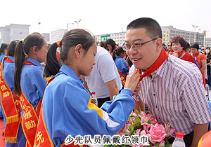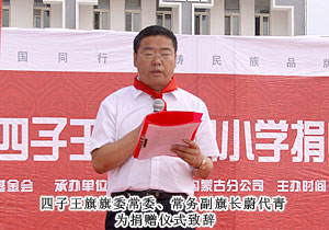 捐贈儀式現(xiàn)場,上百名綠之韻愛心精英共舞《中國人》,昂揚(yáng)的氣勢,莊嚴(yán)的氛圍震撼全場。因?yàn)橥侵袊?,同在藍(lán)天下,所以我們更要像孟子所希望的一樣“老吾老以及人之老,幼吾幼以及人之幼”,奉獻(xiàn)自己力所能及的愛心,為社會輸送溫暖,讓感動在每一個人的心中升溫。少先隊(duì)員為蒞臨現(xiàn)場的領(lǐng)導(dǎo)和嘉賓敬獻(xiàn)紅領(lǐng)巾,那一抹鮮紅代表著光榮,代表著感恩,它在每一位愛心人士的胸前飄揚(yáng),讓綠之韻人的責(zé)任更加重大。四子王旗常委、常務(wù)副旗長蔚代青致歡迎辭,對綠之韻集團(tuán)的大愛無疆表示誠摯的謝意和肯定。胡國安董事長發(fā)言,他表示:教育是立國之本,作為優(yōu)秀的企業(yè)公民,綠之韻始終堅(jiān)持“企業(yè)做大了就是屬于國家、屬于社會的”這一社會責(zé)任理念,為捐建38所綠之韻希望小學(xué)的目標(biāo)堅(jiān)持不懈。草原是雄鷹的故鄉(xiāng),作為同樣從大山里走出來的孩子,胡國安董事長深深知道每一個孩子心中的夢想,希望孩子們能像鷹一樣,在學(xué)習(xí)中志存高遠(yuǎn),鷹擊長空。