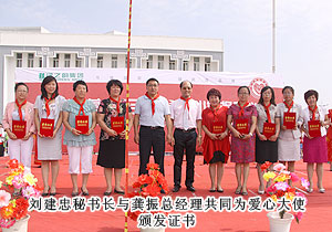 胡國安董事長向內(nèi)蒙古自治區(qū)青基會秘書長劉建忠遞交二十萬捐贈支票,并接受希望工程牌匾。劉建忠秘書長發(fā)表講話,向勇于承擔(dān)社會責(zé)任的綠之韻集團(tuán)和全體營銷精英致上誠摯敬意。四子王旗常委、常務(wù)副旗長蔚代青與胡國安董事長共同為希望小學(xué)揭牌,并向胡國安董事長頒發(fā)榮譽(yù)市民證書。青基會秘書長劉建忠和執(zhí)行總經(jīng)理龔振給愛心經(jīng)銷商頒發(fā)證書,整個活動現(xiàn)場人潮洶涌,彌漫著感恩與關(guān)愛,孩子們精彩的節(jié)目表演將揭牌儀式活動推向了高潮,現(xiàn)場所有精英心懷感動,愿意盡自己的能力獻(xiàn)出更多關(guān)愛和溫暖。龔總在致辭中說:在綠之韻八年的發(fā)展中,綠之韻慈善基金在教育、幫扶、救災(zāi)、助學(xué)等方面作出的公益事業(yè)投入累計已近2000萬元,是每一位愛心綠之韻精英的點(diǎn)滴匯聚才有了公司萬涓成海的善舉。