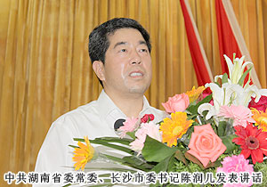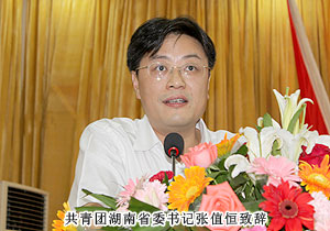 中共湖南省委常委、長(zhǎng)沙市委書記陳潤(rùn)兒發(fā)表講話,對(duì)大會(huì)的順利召開表示熱烈的祝賀。他表示:近年來,全市各級(jí)共青團(tuán)組織和各界青年在市委、市政府的正確領(lǐng)導(dǎo)和高度關(guān)懷下,涌現(xiàn)了一批忠誠(chéng)黨的事業(yè)、熱愛團(tuán)的工作、勇挑社會(huì)責(zé)任的優(yōu)秀青年。廣大青年企業(yè)家要珍惜榮譽(yù),順應(yīng)發(fā)展潮流,艱苦創(chuàng)業(yè),銳意進(jìn)取,在發(fā)展壯大企業(yè)的同時(shí),敢于擔(dān)當(dāng)、服務(wù)社會(huì),成為推動(dòng)長(zhǎng)沙經(jīng)濟(jì)社會(huì)發(fā)展的一支生機(jī)勃勃的力量。共青團(tuán)湖南省委書記張值恒號(hào)召各級(jí)團(tuán)組織和廣大團(tuán)員青年要堅(jiān)定理想信念,加強(qiáng)作風(fēng)建設(shè);堅(jiān)持與時(shí)俱進(jìn),增強(qiáng)創(chuàng)新意識(shí);發(fā)奮學(xué)習(xí)求知,服務(wù)社會(huì)發(fā)展,為加強(qiáng)共青團(tuán)建設(shè),推進(jìn)長(zhǎng)沙經(jīng)濟(jì)社會(huì)新跨越做出積極貢獻(xiàn),并希望廣大青年勇立時(shí)代潮頭、盡展青春風(fēng)采,在長(zhǎng)沙的建設(shè)發(fā)展中展現(xiàn)人生價(jià)值,譜寫更加壯麗的青春樂章。