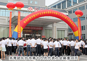 2011年7月18日,共青團(tuán)長(zhǎng)沙市第十八次代表大會(huì)在楓林賓館隆重召開。中共湖南省委常委、長(zhǎng)沙市委書記陳潤(rùn)兒,共青團(tuán)湖南省委書記張值恒,中共長(zhǎng)沙市委副書記、長(zhǎng)沙市市長(zhǎng)張劍飛,中共長(zhǎng)沙市委副書記、常務(wù)副市長(zhǎng)謝建輝,長(zhǎng)沙市人大常委會(huì)主任余合泉,長(zhǎng)沙市委常委、紀(jì)委書記袁觀清等領(lǐng)導(dǎo)及長(zhǎng)沙市全體常委出席會(huì)議。同時(shí)出席會(huì)議的還有市委、市人大、市政府、市政協(xié)、市警備區(qū)各條戰(zhàn)線領(lǐng)導(dǎo)代表,以及來自全省14個(gè)市州的優(yōu)秀團(tuán)組織、青年企業(yè)家代表近400人。