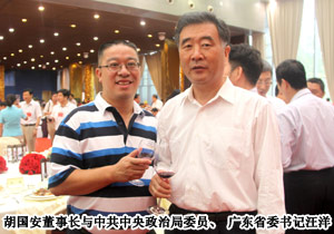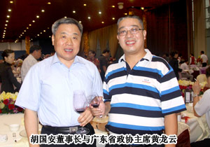 2011年6月27-28日,廣州白云國(guó)際會(huì)議中心商賈云集、盛況空前,由廣東省人民政府與中華全國(guó)工商業(yè)聯(lián)合會(huì)共同舉辦的廣東與全國(guó)知名民營(yíng)企業(yè)合作發(fā)展共促轉(zhuǎn)型升級(jí)大會(huì)暨合作項(xiàng)目簽約儀式在廣州白云國(guó)際會(huì)議中心隆重舉行。中共中央政治局委員、廣東省委書記汪洋、全國(guó)政協(xié)副主席、全國(guó)工商聯(lián)主席黃孟復(fù),中共中央統(tǒng)戰(zhàn)部副部長(zhǎng),全國(guó)工商聯(lián)黨組書記、第一副主席全哲洙,廣東省委副書記、省長(zhǎng)黃華華,廣東省人大常委會(huì)主任歐廣源,廣東省政協(xié)主席黃龍?jiān)频瘸鱿瘯?huì)議以及歡迎晚宴。綠之韻集團(tuán)董事長(zhǎng)胡國(guó)安作為中國(guó)優(yōu)秀民營(yíng)企業(yè)家以及湖南省轉(zhuǎn)型升級(jí)突出企業(yè)代表應(yīng)邀出席此次會(huì)議。