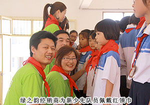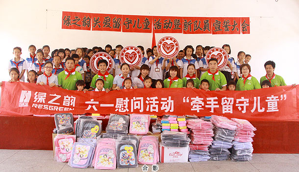 綠之韻集團秉承回饋社會的經(jīng)營理念 ,在發(fā)展中勇于承擔社會責任,從2004年捐助第一所綠之韻老屋希望小學開始就為更多的農(nóng)村孩子提供更多幫助。綠之韻集團一直也關注著留守兒童這一特殊群體,2011年5月30日,在六一國際兒童即將來臨的時候,綠之韻慈善基金總執(zhí)行戴曉彥號召湖南當?shù)氐膬?yōu)秀經(jīng)銷商們?yōu)槔衔菹MW的孩子們送上了六一節(jié)的禮物。綠之韻集團董事常務副總裁勞嘉代表集團領導及員工慰問了綠之韻老屋希望小學的留守兒童,并發(fā)表了講話,鼓勵孩子們要努力學習,從小學會感恩社會、感恩學校和老師,樹立起遠大的理想,爭做祖國的棟梁之才。在慰問活動中,老屋希望小學還策劃了“紅領巾我為你自豪”的少先隊入隊儀式,綠之韻經(jīng)銷商和員工代表一起參加了神圣而光榮的少先隊員入隊儀式,并榮幸的為新隊員佩戴紅領巾,祝愿新老隊員能相互幫助共同進步。綠之韻老屋希望小學的校長也為綠之韻長期以來關注教育關愛青少年兒童的成長表示了真摯的感謝。