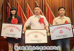 近年來,長沙市各級組織和單位緊緊圍繞市委、市政府打造“創(chuàng)業(yè)之都”和創(chuàng)建全國創(chuàng)業(yè)型城市的總體目標,以“創(chuàng)業(yè)富民、巾幗示范在行動”為載體,積極實施創(chuàng)業(yè)就業(yè)促進行動,在全市組織開展了“巾幗創(chuàng)業(yè)示范基地”、“女大學(xué)生創(chuàng)業(yè)就業(yè)實踐基地”的評選活動。2011年4月28日,綠之韻集團被長沙市婦女聯(lián)合會評選為長沙市“女大學(xué)生創(chuàng)業(yè)就業(yè)實踐基地”。中共長沙市委常委、統(tǒng)戰(zhàn)部長虢正貴、副市長何寄華等市級領(lǐng)導(dǎo)出席本次會議并頒發(fā)榮譽牌匾,長沙市婦聯(lián)黨組書記、主席譚慧慧作工作報告。