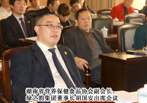 2011年4月1日,湖南保健食品品牌滿意度大型公益民調(diào)活動(dòng)在湖南賓館鄭重公布獲獎(jiǎng)名單。湖南省人大常委會(huì)副主任、黨組副書記陳叔紅、湖南省委農(nóng)村工作部部長(zhǎng)、省政府農(nóng)辦主任杜遠(yuǎn)明、湖南省營(yíng)養(yǎng)食品開發(fā)中心副主任陳楚華等領(lǐng)導(dǎo)出席會(huì)議。會(huì)上,根據(jù)《湖南省營(yíng)養(yǎng)保健食品協(xié)會(huì)章程》,選舉產(chǎn)生了湖南省營(yíng)養(yǎng)保健食品協(xié)會(huì)第三屆名譽(yù)會(huì)長(zhǎng)、會(huì)長(zhǎng)、常務(wù)副會(huì)長(zhǎng)、副會(huì)長(zhǎng)等職,胡國(guó)安董事長(zhǎng)光榮當(dāng)選湖南省營(yíng)養(yǎng)保健食品協(xié)會(huì)副會(huì)長(zhǎng)。