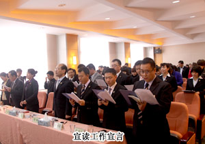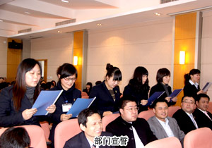 會議首先由綠之韻集團董事常務(wù)副總裁勞嘉作2011年內(nèi)務(wù)管理工作計劃安排及工作動員;緊接著,執(zhí)行總經(jīng)理龔振就2011年市場工作進行統(tǒng)一部署;同時,市場營銷中心總經(jīng)理劉彥明及企劃教育總監(jiān)何健分別就各自所管轄的部門作2011年的工作重點及詳細計劃講解,四位領(lǐng)導(dǎo)均表示,一定會帶領(lǐng)所轄部門,為完成公司2011年年度目標(biāo)而全力以赴!此外,三位員工代表也紛紛上臺發(fā)言,表決心,表信心!