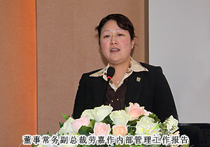 在全體綠之韻人鏗鏘有力的工作宣言中,新的希望化成新的動力,為每一位綠之韻人注入力量。市場總監(jiān)諶獻(xiàn)軍作市場工作報告,新牌照的獲得、新規(guī)劃的推出、新產(chǎn)品的上市等都成為推動市場發(fā)展最有力的臂膀。執(zhí)行總經(jīng)理龔振針對2011年市場營運(yùn)發(fā)表講話,以強(qiáng)有力的扶持措施和各項企劃活動為依托,以必勝的信念引導(dǎo)市場發(fā)展。董事常務(wù)副總裁勞嘉作內(nèi)部管理工作報告,總結(jié)2010年企業(yè)在強(qiáng)化服務(wù)、資源整合、產(chǎn)品多元等方面取得的成績,同時提出來年具體的工作要求。