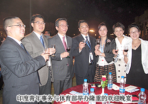 24日晚上,中國駐印大使館在使館內(nèi)舉行招待會為代表團送行并慶?;顒訄A滿成功。中國駐印度大使張炎在招待會上表示,中印百人青年代表團互訪活動是由兩國領(lǐng)導人達成的一項共識,是兩國青年開展交流、互相學習,增進友誼與合作的重要平臺,為兩國友好合作做出了重要貢獻。張炎大使還介紹了近年來中印兩國關(guān)系不斷發(fā)展的情況,并表示青年是中印友誼的未來,他希望通過此次訪問能進一步加強中印兩國青年之間的交流與合作。