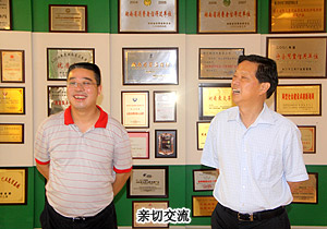在調(diào)研中,胡國(guó)安董事長(zhǎng)簡(jiǎn)要介紹了綠之韻新時(shí)期發(fā)展規(guī)劃以及近期工作情況,并表示,綠之韻所取得的成就離不開(kāi)國(guó)家開(kāi)放共享的經(jīng)濟(jì)理念,同時(shí)感謝湖南省各級(jí)政府及相關(guān)部門(mén)給予綠之韻的大力支持!作為湖南省重點(diǎn)企業(yè),兩位局長(zhǎng)已不止一次赴綠之韻集團(tuán)檢查工作,目前公司正全力籌備配合湖南省工商行政管理局、長(zhǎng)沙市工商行政管理局貫徹落實(shí)兩個(gè)《條例》實(shí)施五周年,宣傳《兩個(gè)條例》執(zhí)行活動(dòng)。會(huì)談中,陳躍文局長(zhǎng)再次將工作做了部署,并表示在以后的工作中還將進(jìn)一步加大支持配合力度。