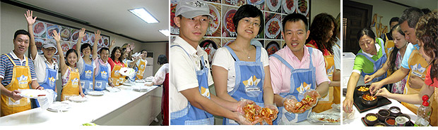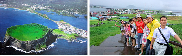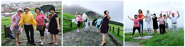 濟州島是韓國最美麗的島嶼,韓國新婚夫妻以及情侶都會在這里共度浪漫時光,因此又有著“蜜月之島”和“浪漫之島”的美稱。在這里,伙伴們充份領(lǐng)略了濟州島的三多:石頭多、風多、海產(chǎn)多。讓大家嘖嘖稱奇的是,因為沒有小偷與乞丐,在島上的民宅里看不到一扇大門,島上居民民心宛如波光耀的大自然與豐富的果實,純潔美麗?;锇閭儏⒂^了天地淵、2002年世界杯賽事體育場等旅游景點,體驗濟州島海水溫泉以及傳統(tǒng)養(yǎng)生汗蒸,穿著韓服學習如何制作泡菜,一個個樂不思蜀。濟州民俗村博物館再現(xiàn)了19世紀濟州島的風情,在這里可以了解韓國民族歷史以及生活習慣同時也可以選購享譽全球的高麗參,為親朋好友挑選一份合意的禮物。魅力濟州島以暴雨迎接了前來參觀的伙伴,但也充分展現(xiàn)了它的熱情與魅力,大家的游興絲毫沒有受到影響反而多出一種“欲與天公試比高”的豪情。