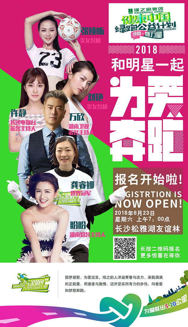綠跑·她力量為貧困母親獻愛5.20公里2018年6月23日上午 長沙松雅湖畔健康中國綠之韻大型公益“綠跑”活動計劃即將火熱開啟美女名模 網紅大V這個夏天,你想遇見誰?