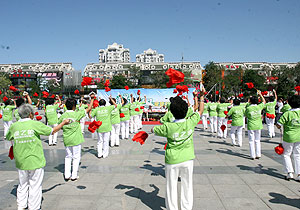 火紅紅的大秧歌、鏗鏘有力的腰鼓聲、時(shí)尚快樂的健康操讓活動(dòng)現(xiàn)場(chǎng)成為一片歡樂的海洋。遼寧省秧歌協(xié)會(huì)副會(huì)長(zhǎng)、盤錦市秧歌協(xié)會(huì)主席徐致祥致辭表示:感謝民族企業(yè)綠之韻集團(tuán)為推動(dòng)全面健身作出的積極貢獻(xiàn),跳出健康,跳出快樂,我們將呼吁廣大群眾積極參與,傳遞綠色的健康理念。