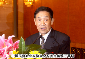 中央電視臺主持人趙瑋擔任主持。會議由九屆全國人大常委會副委員長周光召宣布開幕,并由第八屆全國工商聯(lián)副主席,中國民營企業(yè)家協(xié)會會長姜永濤致開幕詞。姜會長指出:我國民營企業(yè)在改革開放中迅速發(fā)展,民營經濟已經成為我國國民經濟的重要組成部分,在國家的經濟、社會、精神、文化等建設中,發(fā)揮了不可替代的作用。經濟專家認為,“十二五”規(guī)劃推動自主創(chuàng)新和技術進步,大力發(fā)展高科技、新能源、綠色經濟、低碳經濟和文化產業(yè)。這對我國的民營企業(yè)來說,既是新的挑戰(zhàn),也是新的機遇。同時“新36條”的出臺,從制度創(chuàng)新角度推動民營經濟和民間資本的發(fā)展,為民營企業(yè)提供了非常有利的政策保障和市場機遇。他們認為自主創(chuàng)新能力是國家競爭力的核心,也是民營企業(yè)競爭力的核心,只有確實增強企業(yè)的創(chuàng)造能力,才能建設成真正創(chuàng)新型的企業(yè)。
