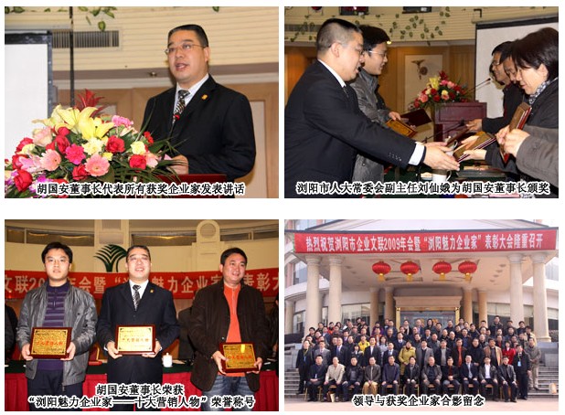 會(huì)上,胡國(guó)安董事長(zhǎng)代表所有獲獎(jiǎng)企業(yè)家發(fā)表講話,他表示:盡管自己不是瀏陽人,卻對(duì)瀏陽這片熱土有著深厚的感情,并愿意與企業(yè)界同仁一起秉承勇于創(chuàng)新、敢于進(jìn)取的瀏陽精神,弘揚(yáng)企業(yè)文化建設(shè),抓住改革開放不斷深入的契機(jī),以創(chuàng)富為民為己任,為社會(huì)的發(fā)展和進(jìn)步作出一個(gè)民族企業(yè)和民營(yíng)企業(yè)家所應(yīng)做的貢獻(xiàn)。