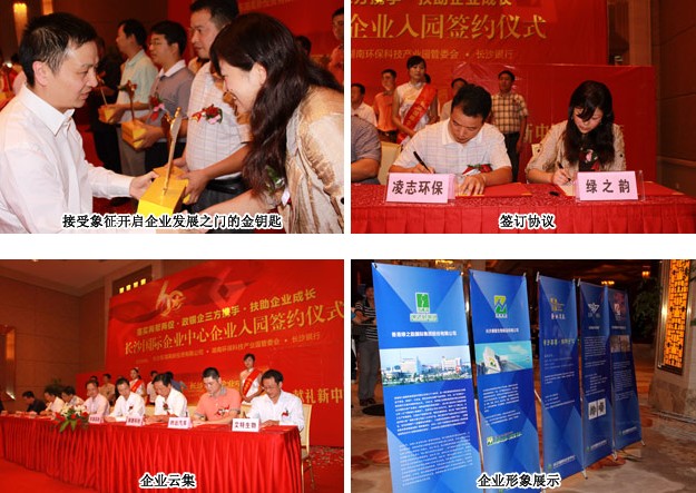 2009年9月27日,湖南環(huán)保科技園長(zhǎng)沙國(guó)際企業(yè)中心企業(yè)簽約入園儀式在湖南長(zhǎng)沙運(yùn)達(dá)•喜來登大酒店隆重舉行。入園簽約儀式得到了省市區(qū)領(lǐng)導(dǎo)和有關(guān)部門大力支持,各級(jí)領(lǐng)導(dǎo)、長(zhǎng)沙銀行、市青年聯(lián)合會(huì)及意向企業(yè)代表匯聚一堂,共同見證這次具有重要里程碑意義的盛會(huì)。綠之韻集團(tuán)常務(wù)副總經(jīng)理勞嘉女士、湖南綠之韻保健日用品有限公司執(zhí)行總經(jīng)理孫立農(nóng)先生作為此次入園十八家企業(yè)代表出席本次大會(huì),并簽訂入園協(xié)議。