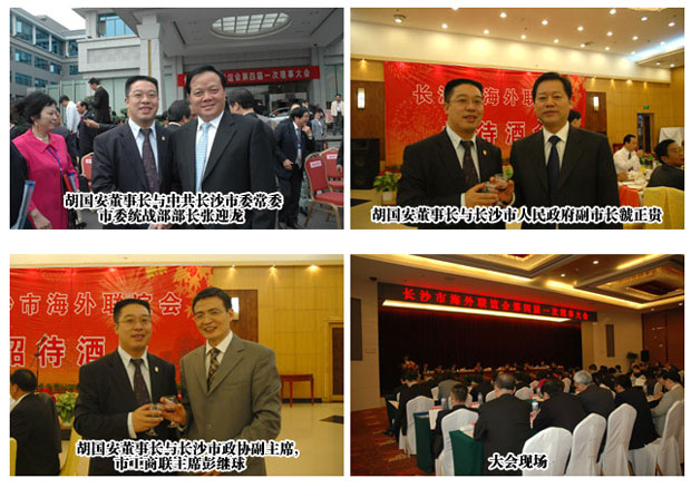 2008年10月23日上午9時整,長沙市海外聯(lián)誼會第四屆一次理事大會在楓林賓館隆重舉行,來自全國包括香港、澳門、臺灣以及海內外華商華僑在內的283名理事出席了會議。湖南省委常委、長沙市委書記陳潤兒,湖南省委統(tǒng)戰(zhàn)部副部長蔡建和到會祝賀并發(fā)表講話,幾十個國家和地區(qū)的海外聯(lián)誼會、商會發(fā)來賀電。
