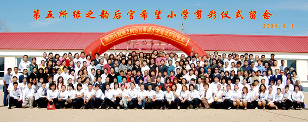 金色九月,是收獲的季節(jié),既收獲成果,又收獲喜悅。這樣的收獲,用于形容吉林省松原市寧江區(qū)善友鎮(zhèn)后官小學(xué)的師生,可以說再恰當(dāng)不過,愛心建成的全新校園,讓他們既收獲可喜的成果,又收獲無限的喜悅。2008年9月4日,綠之韻第五所希望小學(xué)綠之韻后官希望小學(xué)落成剪彩儀式正在這里隆重舉行。彩旗飛舞,鼓樂聲聲,鮮花錦簇,掌聲陣陣,從現(xiàn)在起,后官小學(xué)的師生們將永遠(yuǎn)告別過去那簡陋的校舍,真正擁有屬于他們自己的美好校園,并在這良好的環(huán)境中努力學(xué)習(xí),健康成長。綠之韻集團(tuán)副總經(jīng)理龔振、總經(jīng)理助理兼市場拓展部經(jīng)理諶獻(xiàn)軍、市場拓展部主管羅英、當(dāng)?shù)亟逃诸I(lǐng)導(dǎo)以及300多名吉林綠之韻分銷精英參加了此次剪彩儀式。