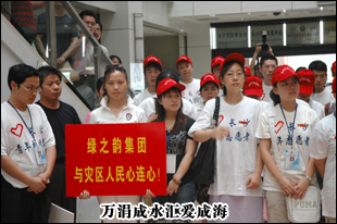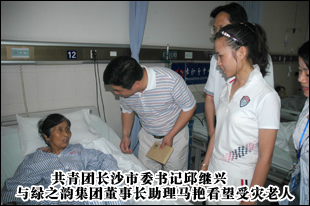 2008年5月26日,,“川湘情一家親 ”長沙志愿者服務(wù)四川地震災(zāi)區(qū)來長沙治療病員活動(dòng)儀式在長沙市中心醫(yī)院舉行,綠之韻集團(tuán)董事長助理、綠之韻慈善基金秘書長馬艷代表集團(tuán)公司出席了活動(dòng)。