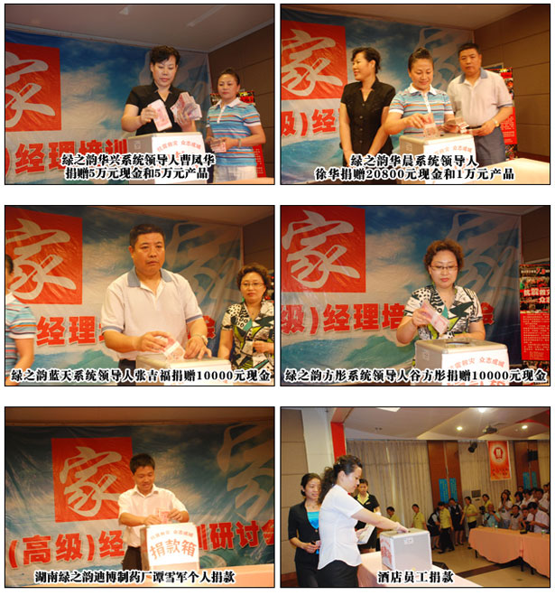 災(zāi)情牽動著全國各地六千多家綠之韻分銷店以及數(shù)以萬計的綠之韻分銷員的心。災(zāi)情發(fā)生后,綠之韻集團總部立即向下屬公司、全國各分公司、全國分銷店、分銷員發(fā)起募捐倡議,號召全體綠之韻人向災(zāi)區(qū)人民伸出援助之手。得到了廣大分銷商及同仁的積極響應(yīng),踴躍獻出自己的一份愛心,綠之韻慈善基金源源不斷地收到來自全國各地不同地區(qū)分銷商的愛心捐款。