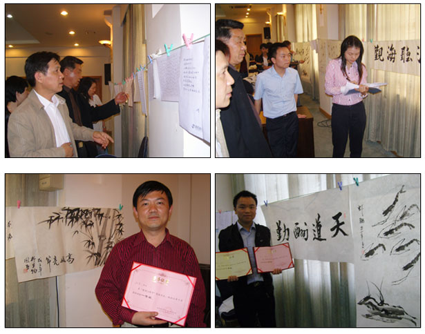 2008年4月30日,由共青團(tuán)瀏陽(yáng)市工業(yè)園委員會(huì)組織開展的“建園10周年”書法、繪畫比賽在園區(qū)舉行。舉辦此次活動(dòng)的意義是為了迎接“五四青年節(jié)”的到來,展示工業(yè)園建園十年來各方面的成就,歌頌在荒山野嶺艱苦卓絕、敢為人先的創(chuàng)業(yè)精神,抒發(fā)建設(shè)一流生物產(chǎn)業(yè)基地的豪情壯志。園區(qū)有二十多家企業(yè)單位踴躍參加,綠之韻集團(tuán)企劃部的員工彭興、王堅(jiān)和財(cái)務(wù)部的劉濤三人代表公司參加了比賽,并取得了優(yōu)異的成績(jī):彭興榮獲書法比賽一等獎(jiǎng)、繪畫二等獎(jiǎng);王堅(jiān)榮獲繪畫比賽一等獎(jiǎng);劉濤榮獲書法比賽二等獎(jiǎng),他們?yōu)榫G之韻集團(tuán)爭(zhēng)光添彩,展現(xiàn)了綠之韻年青人的朝氣和才氣!