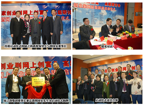 綠之韻集團(tuán)董事長兼總裁胡國安與晨訊傳媒總裁禹路先生合著的《財(cái)富第六波》——在家創(chuàng)業(yè)一書聚焦當(dāng)代利用互聯(lián)網(wǎng)在家創(chuàng)業(yè)的財(cái)富浪潮,引發(fā)了社會(huì)各界的巨大反響,該書發(fā)行以來受到了行業(yè)以及讀者的高度關(guān)注,創(chuàng)下了“2007年度中國國際圖書網(wǎng)經(jīng)濟(jì)類書籍關(guān)注排行榜第三名”、“《京華時(shí)報(bào)》京華超市專版連續(xù)17榜發(fā)行量前5名”的驕人成績。得到了中國雅虎總裁曾鳴、搜狐網(wǎng)首席執(zhí)行官兼總裁張朝陽、中國社科院信息化研究中心秘書長姜奇平、阿里巴巴首行執(zhí)行官馬云等互聯(lián)網(wǎng)權(quán)威的聯(lián)袂推薦。由此,特別策劃了“財(cái)富第六波——從在家創(chuàng)業(yè)到網(wǎng)上創(chuàng)富”大型主題研討會(huì),群策群力,眾志成城,以推動(dòng)中國財(cái)富健康增長和經(jīng)濟(jì)大繁榮。