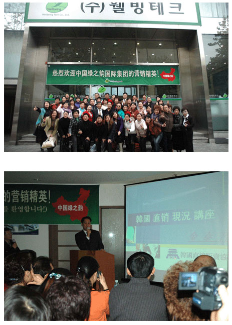韓國“Wellbeingtech”公司從事直銷業(yè)已有三年時(shí)間,目前擁有四百多個(gè)產(chǎn)品,覆蓋了生活日用的各個(gè)方面,深受韓國人的喜愛。在這里,我們不僅感受到韓國同行業(yè)者對(duì)綠之韻的熱烈歡迎,而且,也看到韓國直銷行業(yè)一派和諧而充滿朝氣的忙碌景象。年輕化的銷售人員或是圍桌而坐認(rèn)真的溝通交流,或是齊聚一起坐在小會(huì)議室里聚精會(huì)神地聽著講師授課。一張張年輕的面容流露出求知若渴的神情,讓我們以為走進(jìn)了某所大學(xué)的教室。韓國人民對(duì)直銷事業(yè)的熱愛和認(rèn)可度可見一斑。