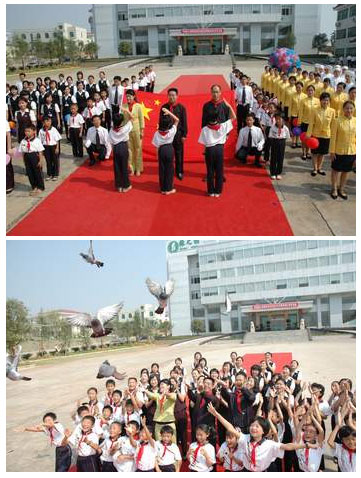金秋十月,繁華似錦,神州大地,普天同慶。我們滿懷激情的迎來了偉大祖國57周年華誕。9月30日,綠之韻國際集團(tuán)國內(nèi)事業(yè)總部舉行了一場隆重的升國旗儀式,由綠之韻國內(nèi)事業(yè)總部的全體員工及綠之韻瀏陽老屋希望小學(xué)的學(xué)生代表參加。當(dāng)莊嚴(yán)的國歌在耳邊奏響,無數(shù)熱切的目光注視著五星紅旗冉冉升起,鮮艷的五星紅旗高高飄揚(yáng)在藍(lán)天白云下的時(shí)候,每個(gè)人都肅然起敬。一種驕傲和自豪的感覺在心中油然而生。隨后,綠之韻公司的司旗伴隨著激情高亢的綠之韻之歌也升上了天空,迎風(fēng)招展。在升旗儀式結(jié)束后,綠之韻國際集團(tuán)領(lǐng)導(dǎo)、員工和綠之韻瀏陽老屋希望小學(xué)的孩子們站在國旗下齊聲祝福祖國“繁榮昌盛,和平統(tǒng)一”,共同放飛和平鴿和彩色氣球。