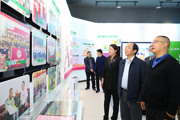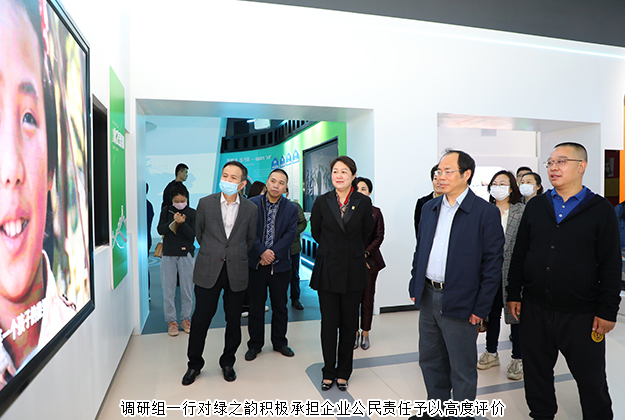 調(diào)研組一行首先參觀了綠之韻集團新落成的國際會議中心多功能形象展示廳。展廳以綠之韻“水的精神”為貫穿構(gòu)想,運用現(xiàn)代化、科技化、智能化的創(chuàng)新技術(shù)手段,全方位、多角度、深層次的向調(diào)研組一行生動呈現(xiàn)了綠之韻十七年的創(chuàng)業(yè)歷史、企業(yè)文化、所獲表彰、黨建公益、產(chǎn)品科研、金融布局等企業(yè)發(fā)展全景。胡國安董事長圍繞企業(yè)歷程、產(chǎn)品研發(fā)、非公黨建、公益慈善和愿景規(guī)劃等方面的工作情況向調(diào)研組一行作了詳細匯報。多年來,綠之韻積極響應(yīng)省委省政府、市委市政府、園區(qū)號召,不斷加大科研投入,不斷深化“產(chǎn)學研”合作,先后與南京大學、湖南農(nóng)業(yè)大學、湖南省中醫(yī)藥大學、湖南中醫(yī)藥研究院等科研機構(gòu)、高等院校達成戰(zhàn)略合作,成立了產(chǎn)品專家委員會,目前亦正在加快籌建綠之韻博士后科研工作站。在企業(yè)發(fā)展的同時,綠之韻積極承擔社會責任,踴躍參與和傾情捐助了書香助學、關(guān)愛貧困母親、美麗鄉(xiāng)村、賑災扶貧等100多項社會公益事業(yè),累計捐贈款物7000多萬元。