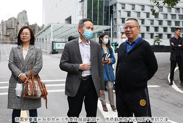 2020年3月24日,中共長沙市委常委、統(tǒng)戰(zhàn)部部長譚小平,市委統(tǒng)戰(zhàn)部副部長、市僑聯(lián)黨組書記王國平一行蒞臨綠之韻集團調(diào)研指導。中共瀏陽市委常委、統(tǒng)戰(zhàn)部部長郭瑞,中共瀏陽市委常委、政法委書記戴武明,中共瀏陽市委統(tǒng)戰(zhàn)部副部長江涵,瀏陽經(jīng)開區(qū)黨工委委員、管委會副主任何六生陪同調(diào)研。湖南省政協(xié)委員、長沙市海外聯(lián)誼會常務(wù)副會長、香港長沙商會常務(wù)副會長、綠之韻集團董事長胡國安,湖南省工商聯(lián)女商會常務(wù)副會長、瀏陽市工商聯(lián)副主席、綠之韻集團董事總裁勞嘉,副總裁胡均安,黨委書記劉云等公司領(lǐng)導全程陪同。