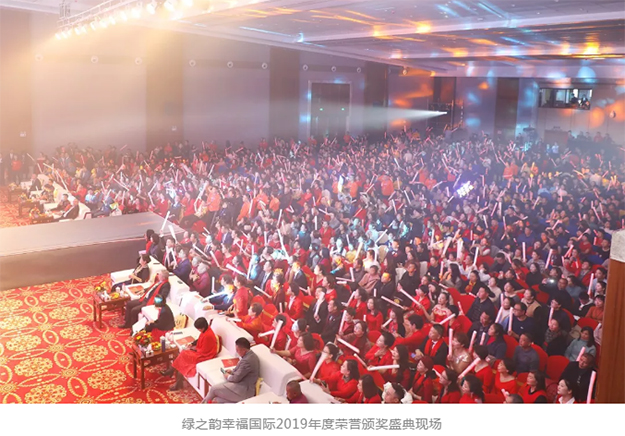 2019年12月28日,幸?!槟愣鴣怼G之韻幸福國際2019年度榮譽頒獎盛典在瀏陽成功舉行。綠之韻集團董事長胡國安,董事、總裁勞嘉攜公司高管團隊參加會議,與來自全國各地的2000余名綠之韻家人匯聚一堂,共襄盛舉。大會全程通過PC、移動端在線互動視頻直播,線上20000多人共同收看和分享了大會盛況。