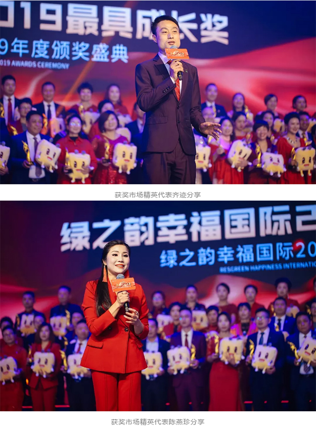 他們,在實戰(zhàn)中不斷錘煉自我,只為向眾人宣告自己的成長。過硬的成績讓他們成為2019年不可忽略的一道風(fēng)景。他們說,自身的成長即是一種幸福。綠之韻集團副總裁胡均安、副總經(jīng)理梅其慧、市場管理中心業(yè)務(wù)總經(jīng)理曹兵、國際商學(xué)院執(zhí)行院長黎芋成為“2019最具成長獎”獲得者頒獎,并致以祝賀。優(yōu)秀市場精英齊跡、陳燕珍作分享。