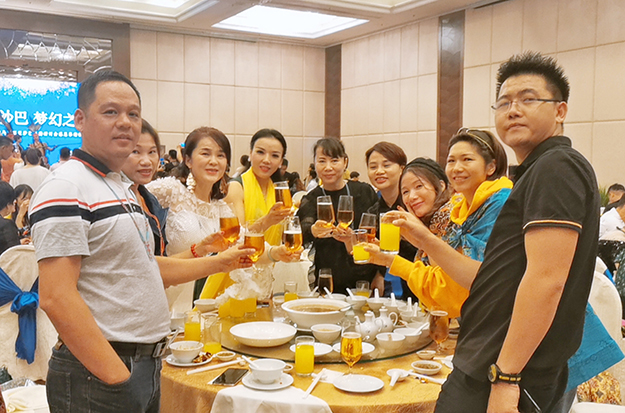 沙巴之旅的最后一個(gè)晚上,綠之韻為所有家人們準(zhǔn)備了驚喜的感恩答謝晚宴。傍晚時(shí)分,家人們身著精致的晚禮服,優(yōu)雅地步入晚宴大廳。晚宴現(xiàn)場(chǎng),來(lái)自綠之韻集團(tuán)董事長(zhǎng)胡國(guó)安、董事總裁勞嘉、總經(jīng)理劉維利的祝福視頻令在場(chǎng)家人們感動(dòng)不已,掀起了晚宴的第一個(gè)高潮。隨后,綠之韻集團(tuán)副總裁劉淑娟、副總經(jīng)理梅其慧為旅行期間過(guò)生日的綠之韻家人獻(xiàn)上了定制蛋糕、精美的禮品以及美好的祝愿,感動(dòng)與喜悅的淚水久久縈繞在家人的眼眶中。在此起彼伏的祝福聲與掌聲中,綠之韻家人們品嘗著豐盛的大餐,觀看著精彩紛呈的歌舞表演,互相分享著此次旅途的收獲與感悟。現(xiàn)場(chǎng)一片歡聲笑語(yǔ),家人們度過(guò)了一個(gè)難忘而又迷人的夜晚。